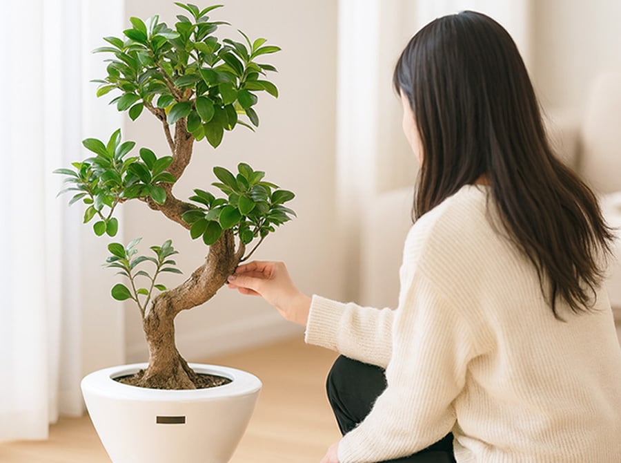 【お得な3点セット】ガジュマル パキラ サンスベリア 白砂利(丸容器)