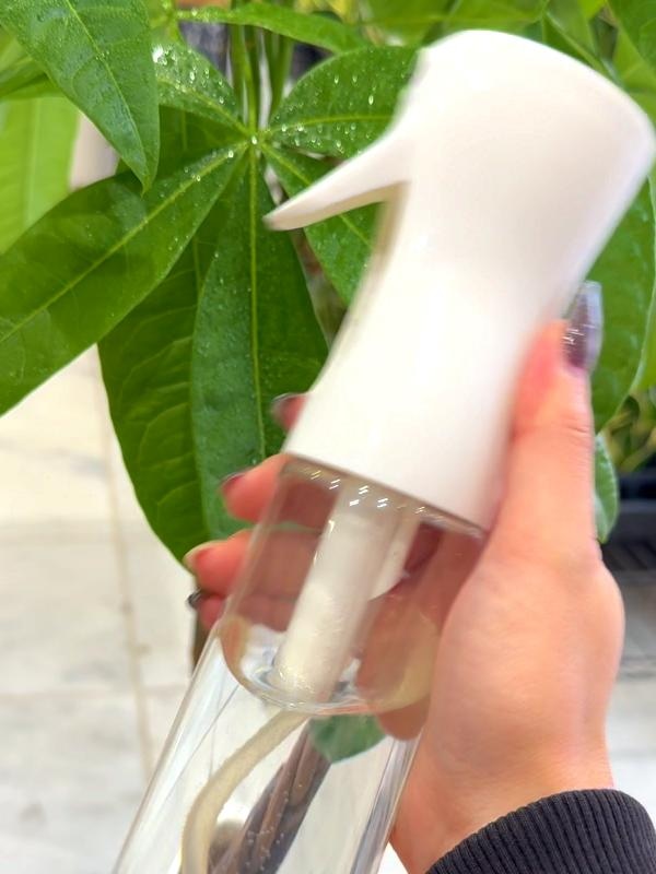 この霧吹きは、水がミストじょうになって出てくるので、観葉植物の葉っぱに細かい水滴が付着してくれます。