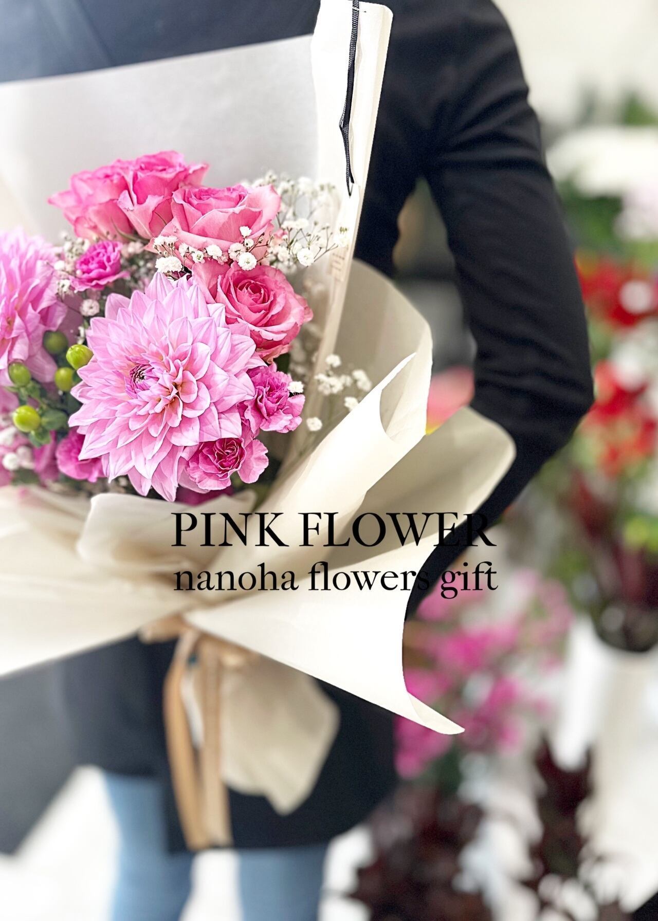 【Pink Bouquet】ピンクの花束 白ラッピング