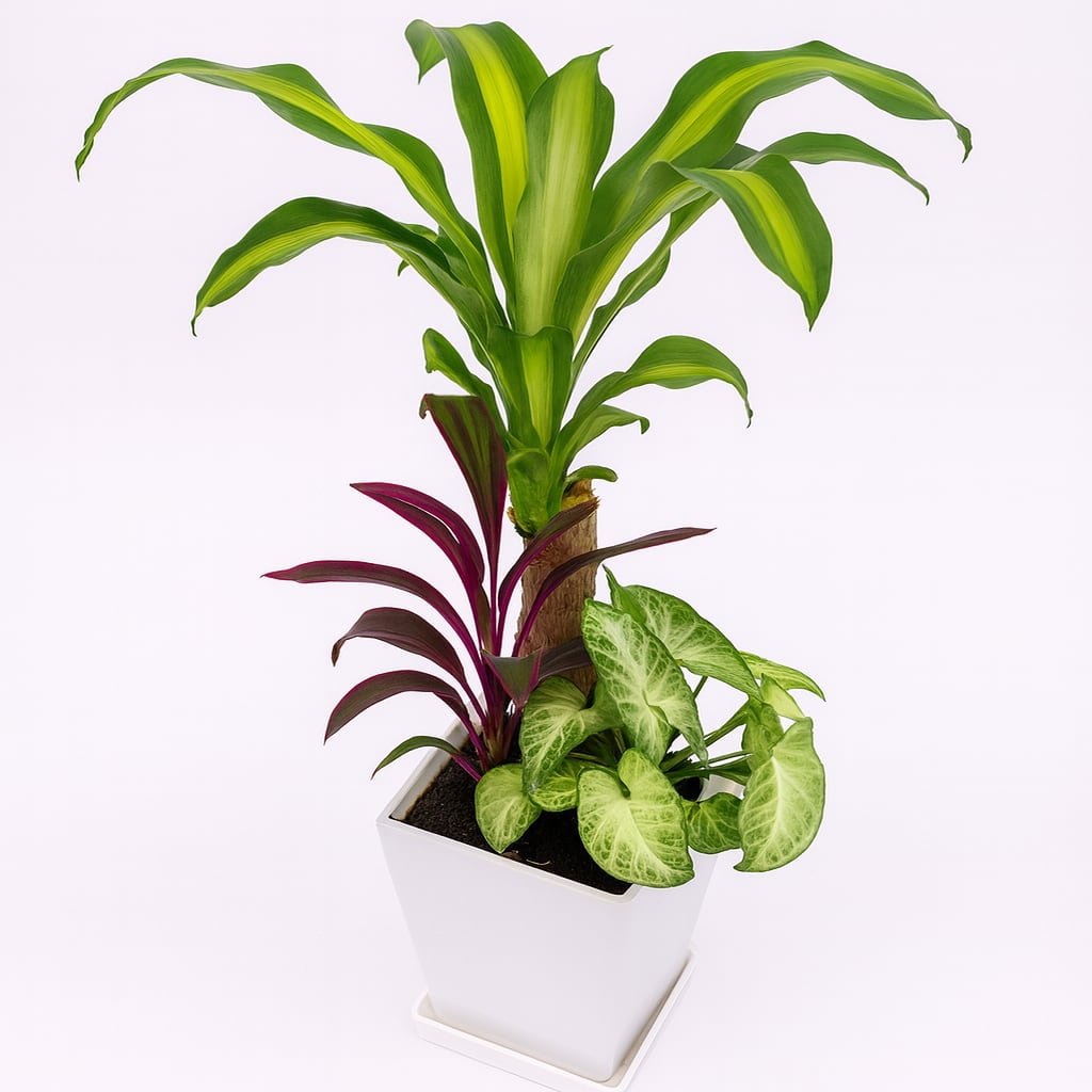 縁起の良い観葉植物を詰め合わせた寄植え。お家のインテリアにはもちろん、様々なお祝いのシーンでも活用でき、空間の雰囲気をガラリと彩ります。農園さんから直送される商品になりますので、新鮮で元気な観葉植物をお届けできます