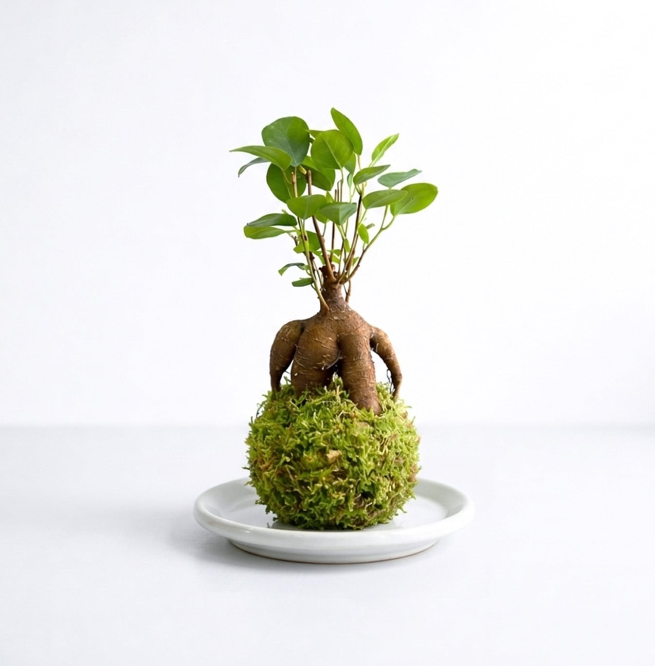 テーブルプランツ苔玉ガジュマル(白の受け皿付き)