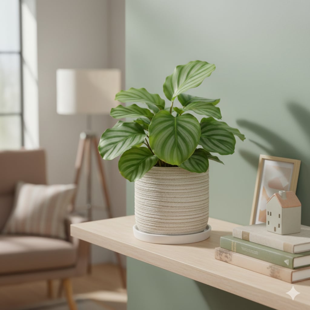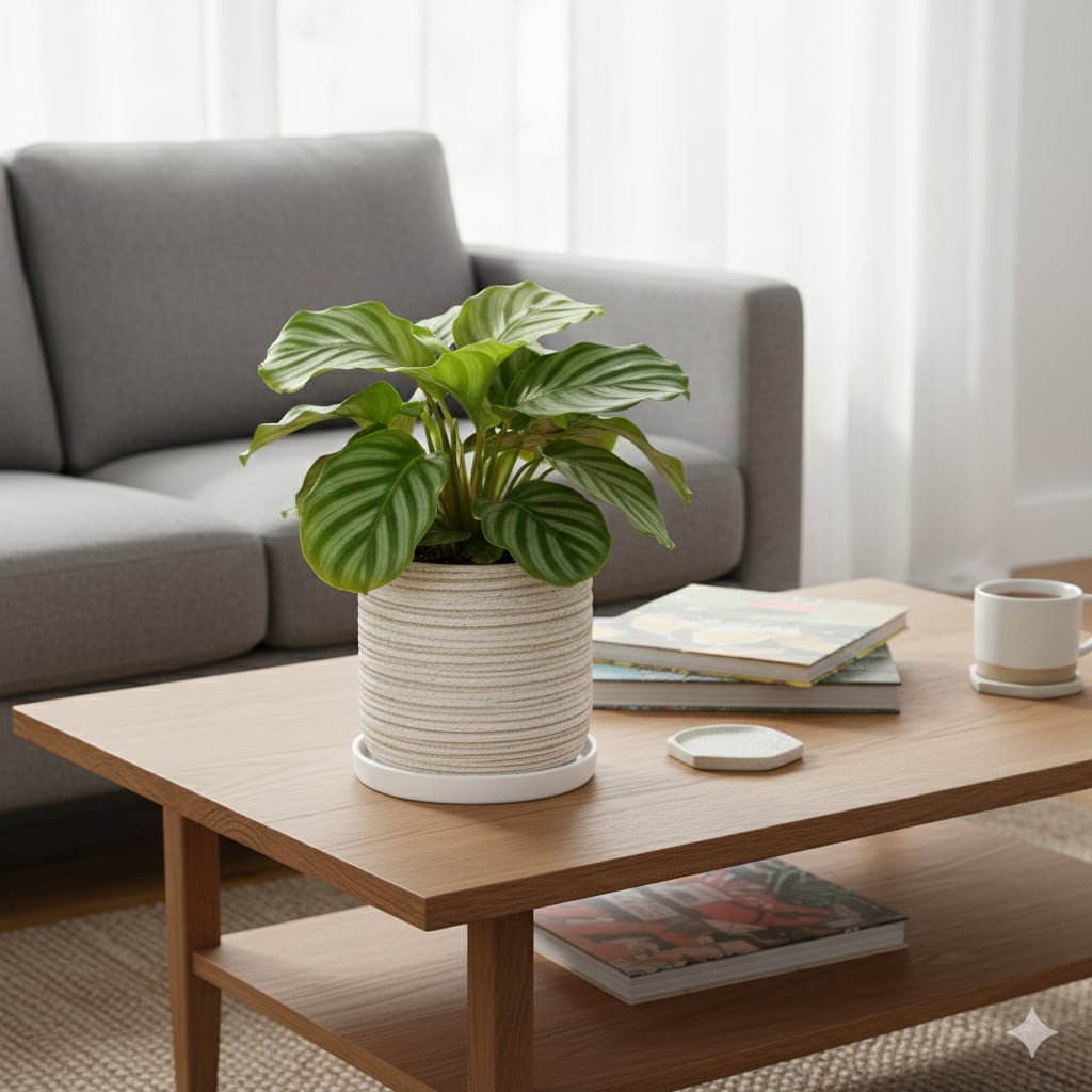 カラテア・オルビフォリア 5号 陶器鉢(受け皿付き)