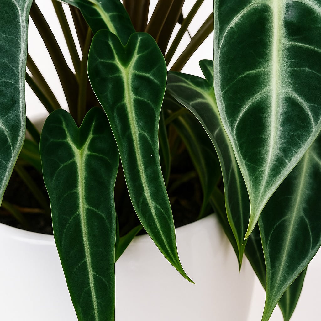 光沢の矢じり型の葉っぱ。神秘的な模様の葉脈がお洒落な観葉植物。インテリアとしても映える事間違いなし!人気も急上昇しています。