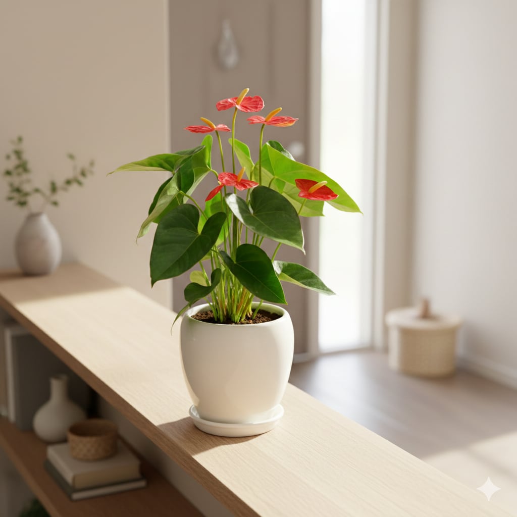 愛する人への贈り物アンスリウム 5号 陶器 レッド