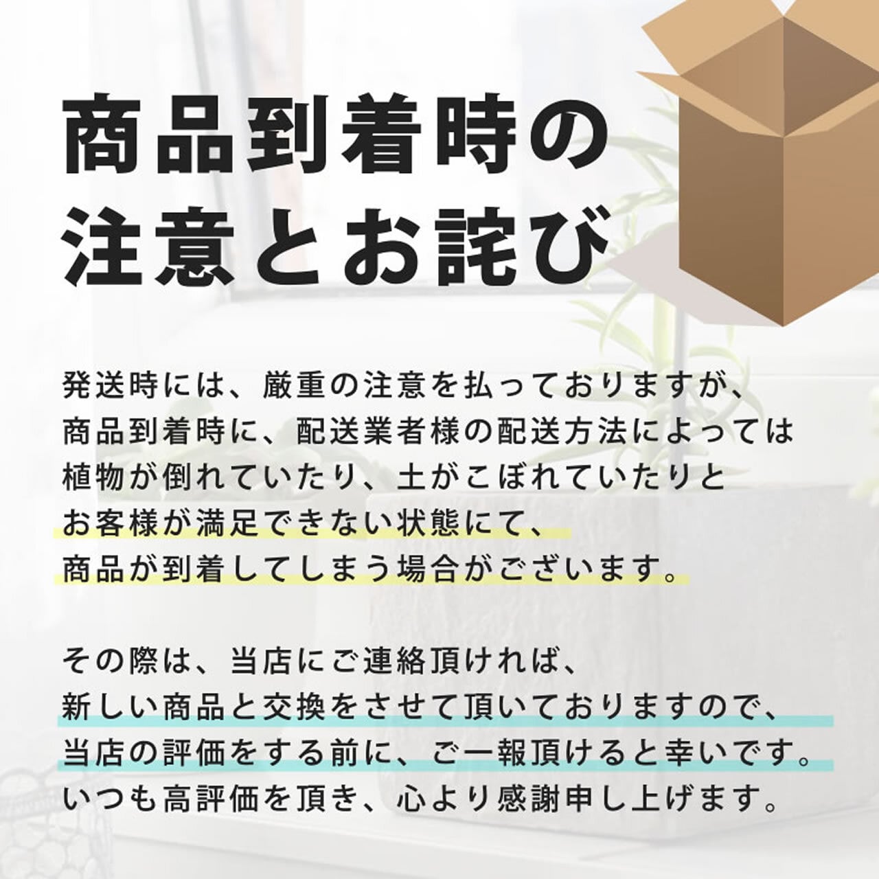 ⚫︎当店で取り扱う観葉植物は、一つひとつ葉の形や幹の曲がり方が異なります。商品写真はあくまで「参考イメージ」です。同じ品種でも、実際にお届けする植物とは見た目が多少異なる場合があります。