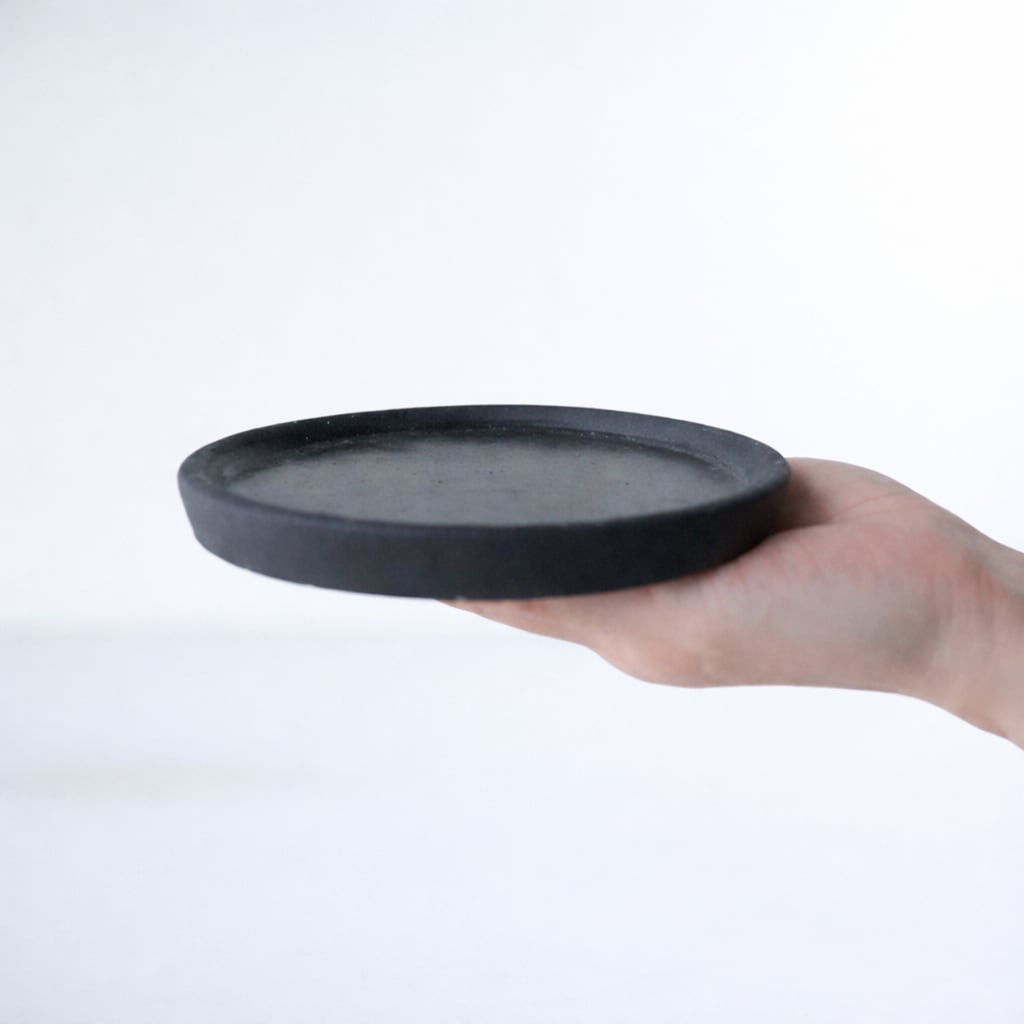 臨場感あふれる洒落な黒陶器鉢(受け皿付き)