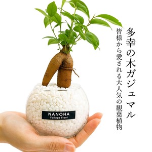 観葉植物の中でも人気の高いガジュマルと白玉砂利をガラスボールの中で植え替えた一品。土を使っていないので、虫が湧きづらく衛生的。更にお洒落に飾れる、ミニサイズの観葉植物。