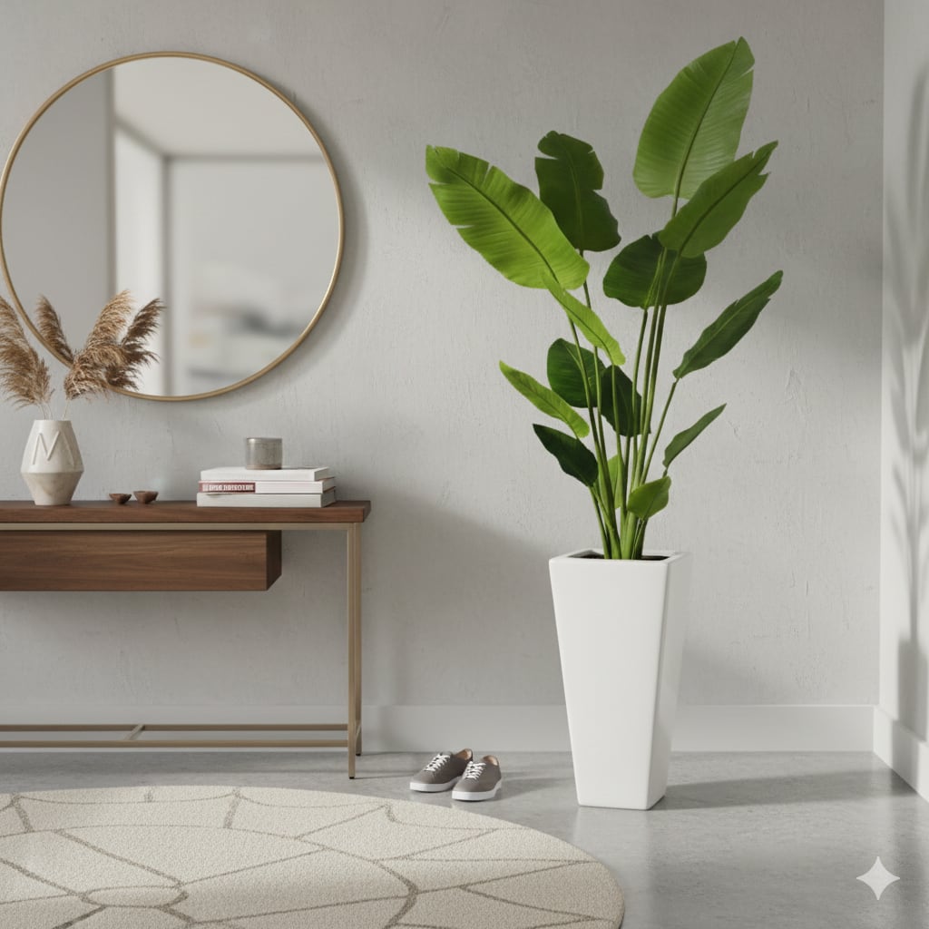 大きな緑の葉っぱが特徴的なストレリチア。南国の観葉植物で、室内に飾る事で雰囲気が明るくなる植物で多くの方から評価されています